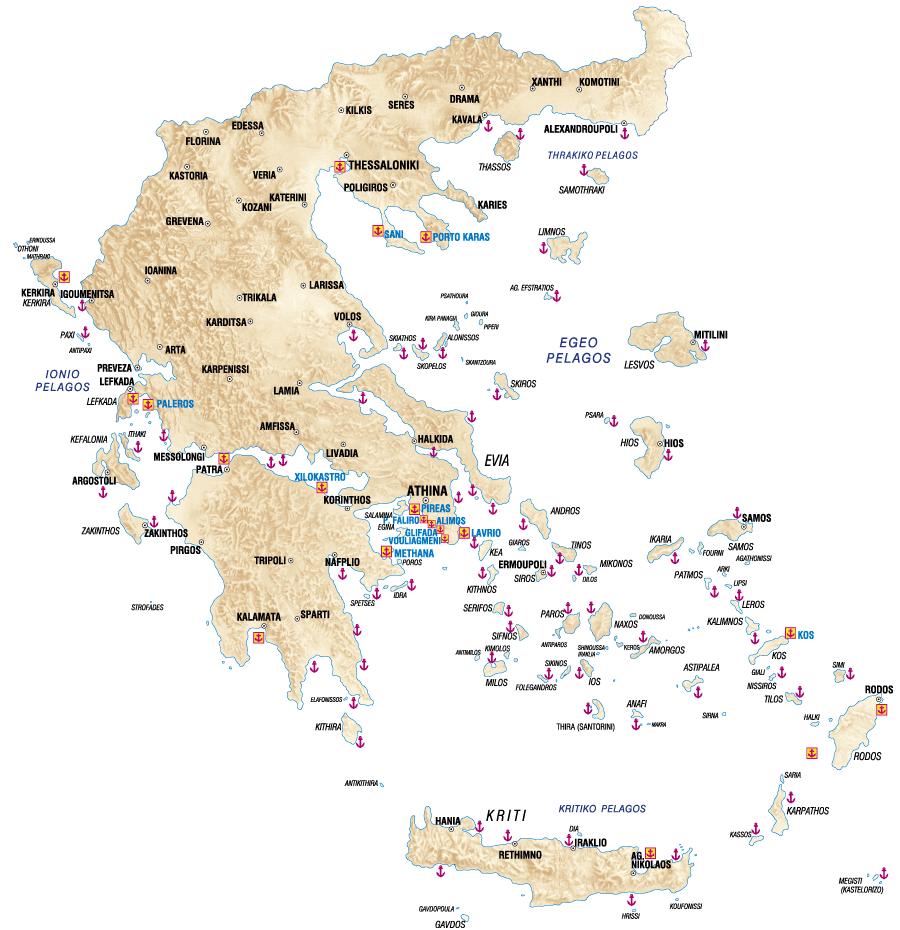 Grecia puertos mapa